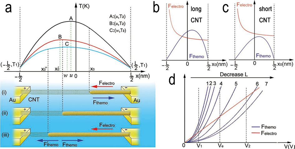 图2.焦耳热使金属电极材料熔化流进碳纳米管过程中的热/动力学行为及其对器件电学性能的影响。
