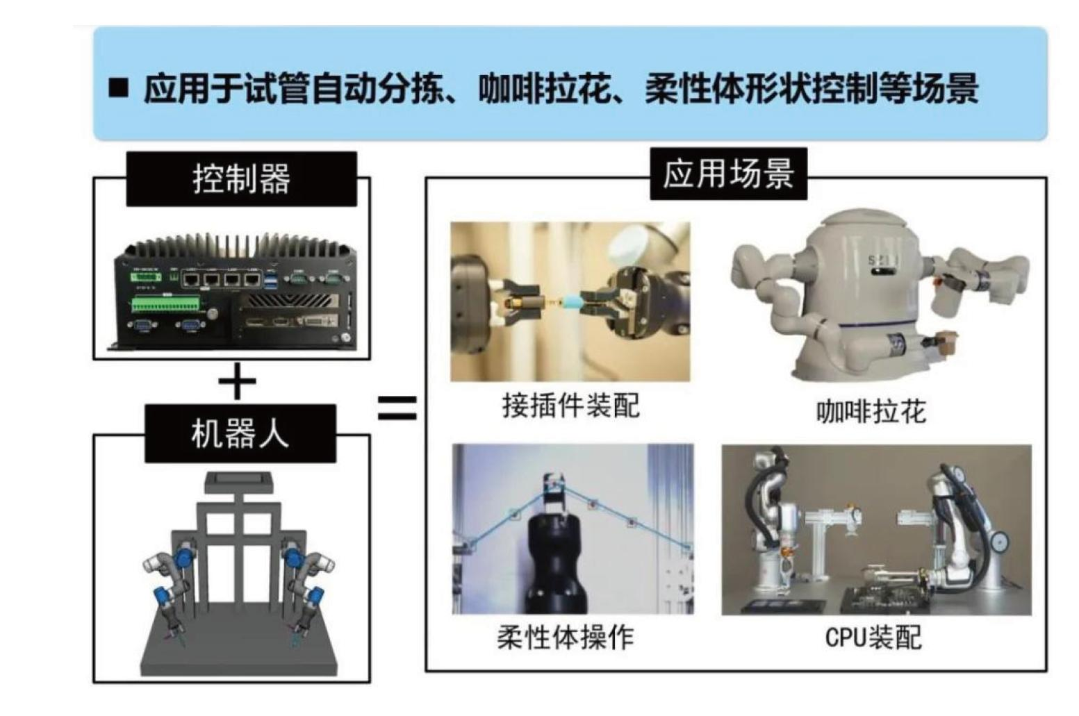 该项目提出基于人类示教策略和小样本增量的机器人高效技能学习方法,构建具有数字孪生功能的机器人灵巧操作平台,研制出集成数字孪生、智能感知、智能规划、智能控制等算法的新一代机器人智能控制器,有效解决了机器人部署速度慢、通用性差的难题,可实现在多应用场景下进行演示。基于深度信息轴向检测的试管姿态评估方法研发的试管自动分拣机器人,完成随机摆放的试管单次分拣推理动作时长少于5.5秒,单次操作时长少于5.5秒,分拣准确率高达97.8%。研制的咖啡大师机器人,可以实现机器人双臂协作咖啡拉花等高难度类人动作。