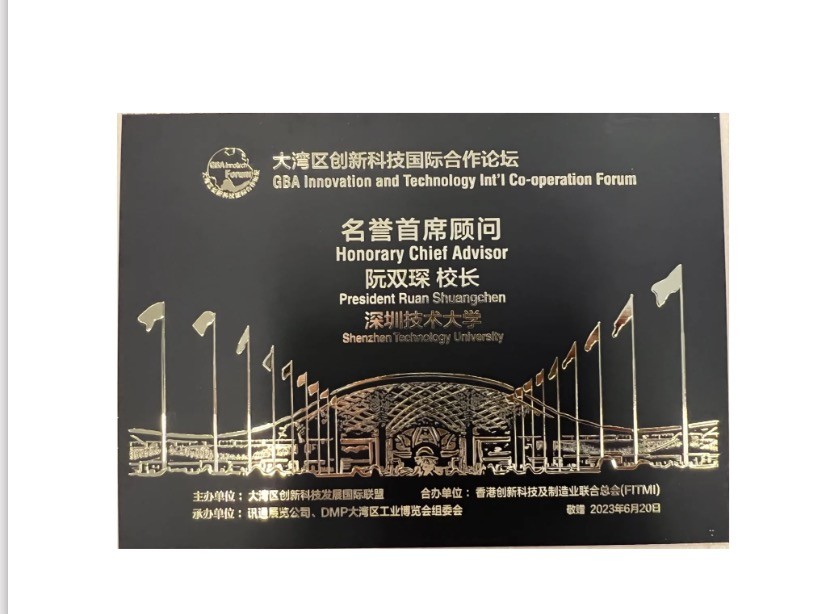 在2023大湾区创新科技国际合作论坛开幕式上,伟德网上app校长阮双琛教授被评为“大湾区创新科技国际合作论坛名誉首席顾问“。