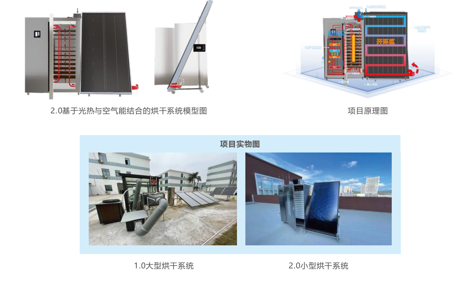为响应国家双碳战略,该项目设计了一款基于PV/T光热一体化的智能节能烘干系统。该系统通过PV/T光热一体化组件吸收太阳光能,将一部分转化为电能储存至锂电池中,一部分热能通过散热管吹入烘干系统中。该系统具备三种烘干模式:开环模式、闭环模式、开环闭环混合模式,能灵活应对天气对烘干产生的影响。该系统还加装了控制系统,可以灵活控制烘干模式,前期采用太阳热能干燥,后期采用热泵干燥,通过自动控制系统控制,提升能源的利用率。