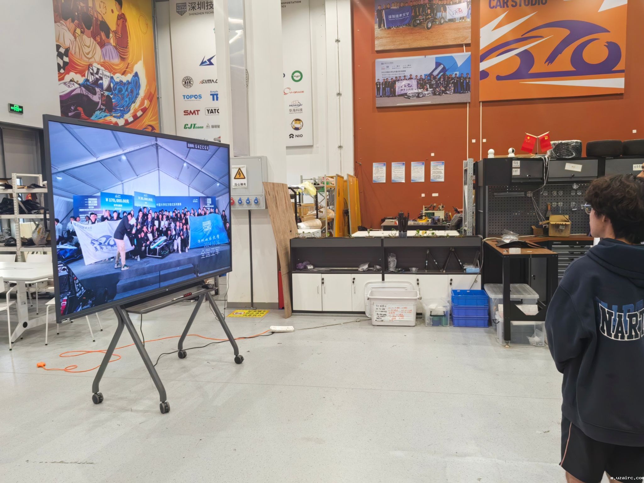 在赛车工作室,姜勇一行观摩了极光电动方程式赛车Aurora–24,并深入了解研发历程。该赛车由学生团队自主设计制造,在2024“蔚来杯”中国大学生电动方程式大赛中获全国总亚军及多项单项冠军。工作室学生全程参与赛车制造,每年经历完整研发周期。姜勇认为深技大通过真实项目驱动教学,培养学生综合能力,其“做中学”模式是创新创业教育精髓。该工作室已获国家级奖项35项,培养的学生受比亚迪、小鹏等车企青睐。
