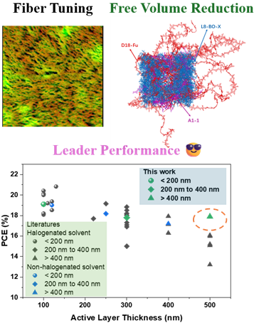 研究工作2:基于聚集调控与添加剂工程实现接近18%效率的500 nm厚膜有机太阳能电池