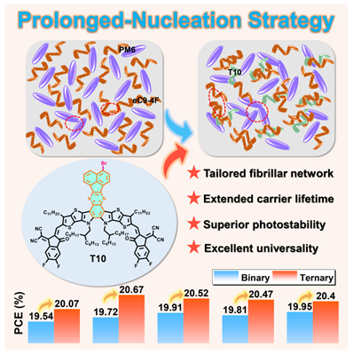 研究工作3:给体二次成核调控策略助力碳氢溶剂处理二元有机光伏器件效率突破20%