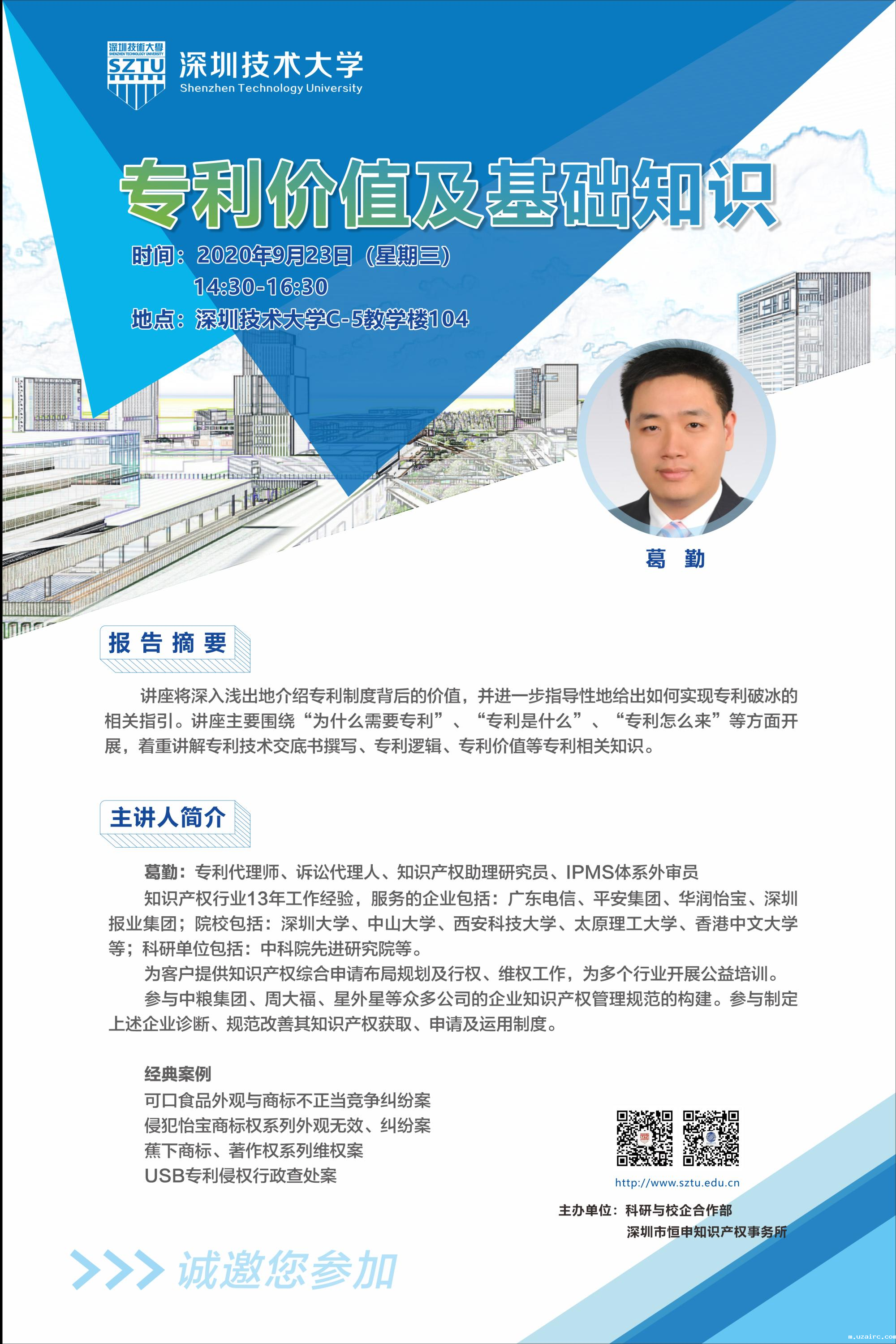讲座将深入浅出地介绍专利制度背后的价值,并进一步指导性地给与如何实现专利破冰的相关指引。讲座主要围绕“为什么需要专利”、“专利是什么”、“专利怎么来”等方面开展,着重讲解专利技术交底书撰写、专利逻辑、专利价值等专利相关知识。