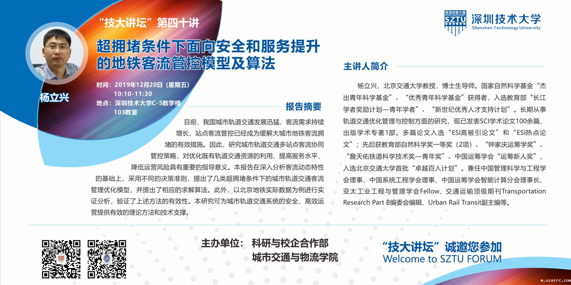 主讲人:杨立兴时间:2019年12月20日(星期五)10:10-11:30地点:伟德网上appC-5教学楼103教室主题:超拥堵条件下面向安全和服务...