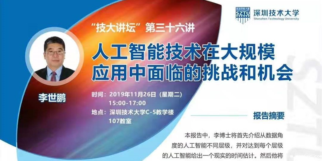 讲座预告:“技大讲坛”第三十六 人工智能技术在大规模应用中面临的挑战...