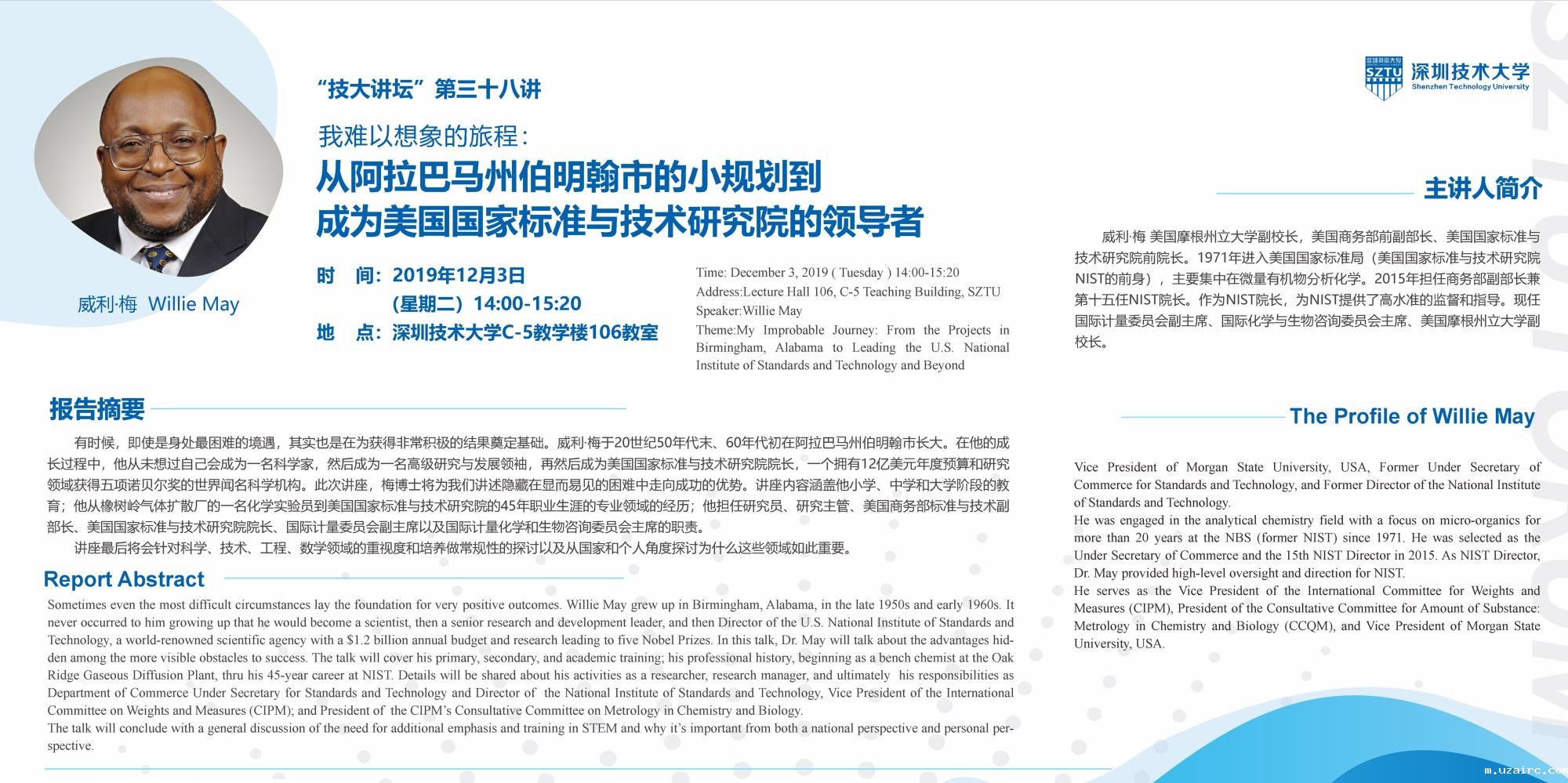 讲座预告“技大讲坛”第三十八讲 我难以想象的旅程:从阿拉巴马州伯明翰...