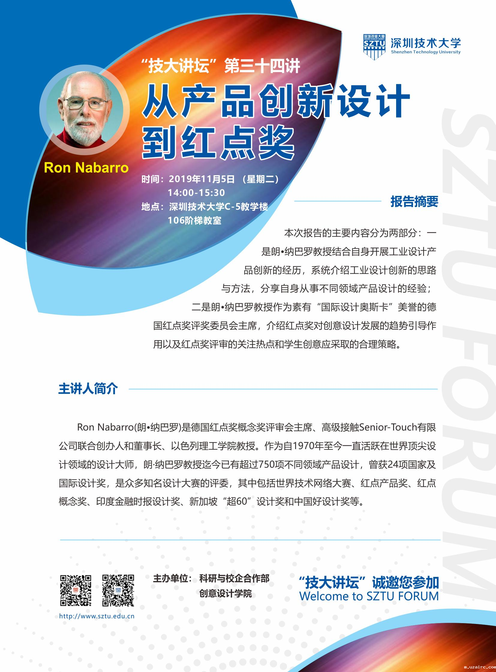 “技大讲坛”预告:第三十四讲 从产品创新设计到红点奖