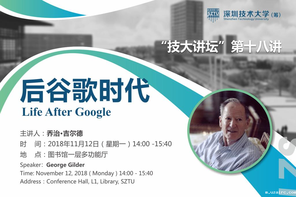 时间:2018年11月12日(星期一)14:00 -15:40地点:图书馆一层多功能厅主讲人:乔治·吉尔德主题:后谷歌时代Time: November 12, 2...